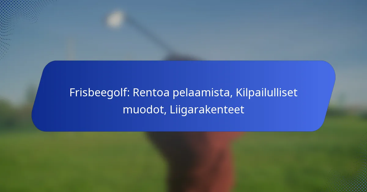 Frisbeegolf on dynaaminen urheilulaji, joka sisältää ainutlaatuisia pisteytysjärjestelmiä, jotka voivat suuresti vaikuttaa peliin ja strategiaan. Eri formaattien ja sääntöjen, jotka vaihtelevat rentojen ja kilpailupelien välillä, vuoksi pelaajien on navigoitava kenttäsuunnittelusta ja ympäristötekijöistä johtuvissa haasteissa. Näiden elementtien ymmärtäminen on olennaista kilpailupelin parantamiseksi ja pelin yleisen nautinnon lisäämiseksi. Key sections in the article: Toggle Mitkä ovat Frisbeegolfin…
