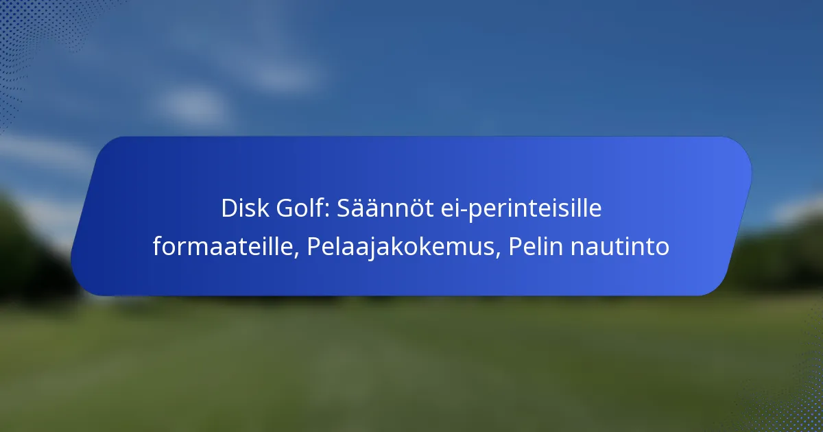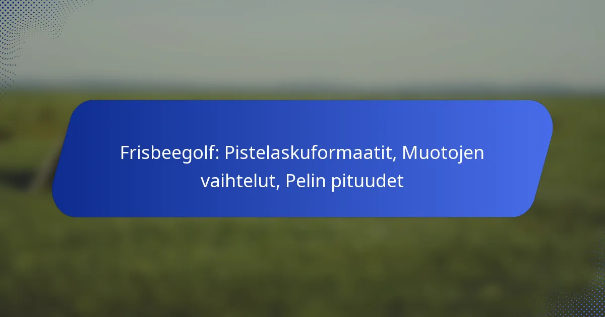 Disc golfissa on useita erilaisia pisteytysformaatteja, jotka palvelevat eri pelaajien mieltymyksiä ja kilpailutasoja. Keskeiset muodot, kuten lyöntipeli, ottelupeli ja joukkuepeli, sisältävät kukin ainutlaatuisia sääntöjä ja strategioita, jotka vaikuttavat pelitapaan ja pelaajien taktiikoihin. Näiden formaattien ymmärtäminen voi parantaa pelin kokonaiskokemusta ja nautintoa. Mitkä ovat disc golfin pääasialliset pisteytysformaatit? Disc golfissa on useita pisteytysformaatteja, joista jokaisella on…