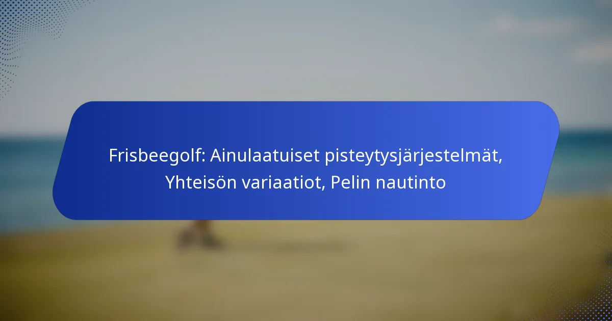 Frisbeegolf tarjoaa dynaamisen kokemuksen ainutlaatuisten pisteytysjärjestelmiensä ja yhteisömuunnelmiensa kautta, jotka parantavat peliä. Nämä paikalliset mukautukset eivät ainoastaan tuo erilaisia haasteita, vaan myös edistävät pelaajien välistä yhteishenkeä. Lajin viehätys piilee sosiaalisen vuorovaikutuksen, kilpailun ja saavutettavuuden yhdistelmässä, mikä tekee siitä nautittavan kaikentasoisille harrastajille. Mitkä ovat frisbeegolfin ainutlaatuiset pisteytysjärjestelmät? Frisbeegolfissa on useita ainutlaatuisia pisteytysjärjestelmiä, jotka parantavat peliä ja…