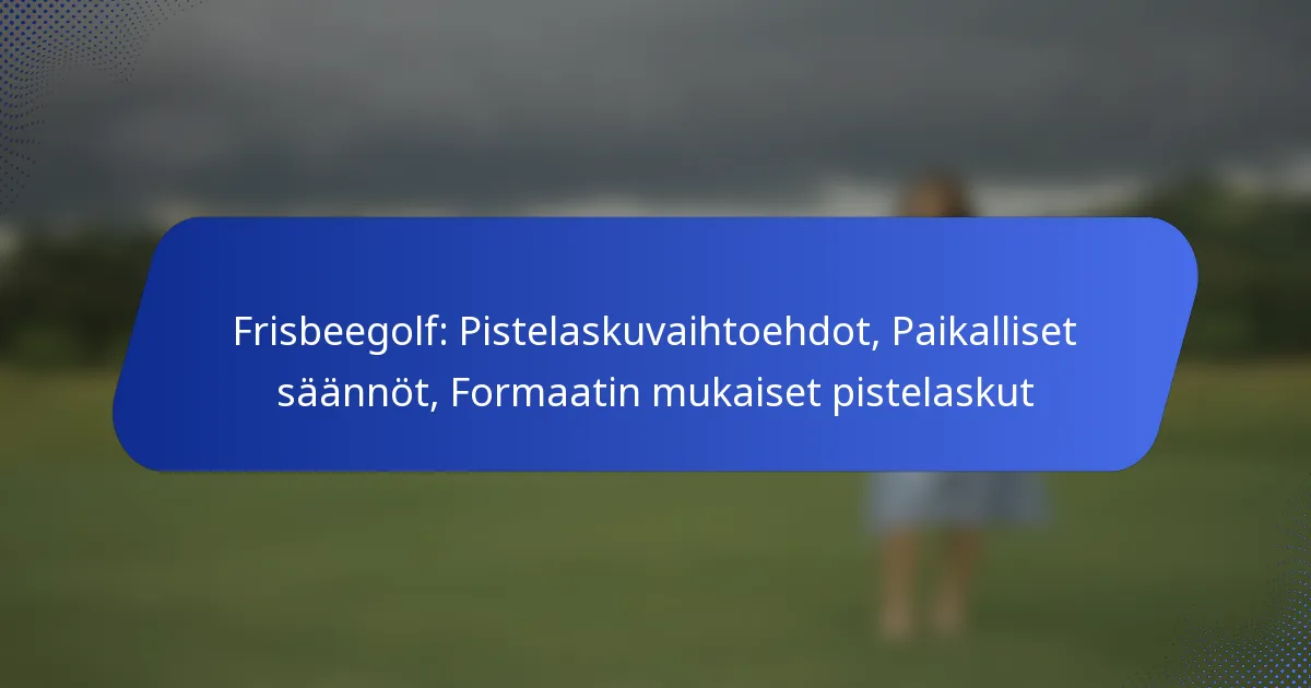 Disc golf tarjoaa erilaisia pisteytysvaihtoehtoja, jotka parantavat peliä ja strategiaa. Paikalliset säännöt voivat merkittävästi vaikuttaa pisteytykseen määrittelemällä, miten tietyissä tilanteissa, kuten ulkopuolisilla alueilla ja rangaistuksilla, toimitaan eri kentillä. Lisäksi formaattiin liittyvät pisteytysmenetelmät vastaavat turnausten, liigojen ja rentojen pelien ainutlaatuisia vaatimuksia, varmistaen, että pelaajat voivat tarkasti seurata suoritustaan erilaisissa ympäristöissä. Mitkä ovat pääasialliset pisteytysvaihtoehdot disc golfissa?…